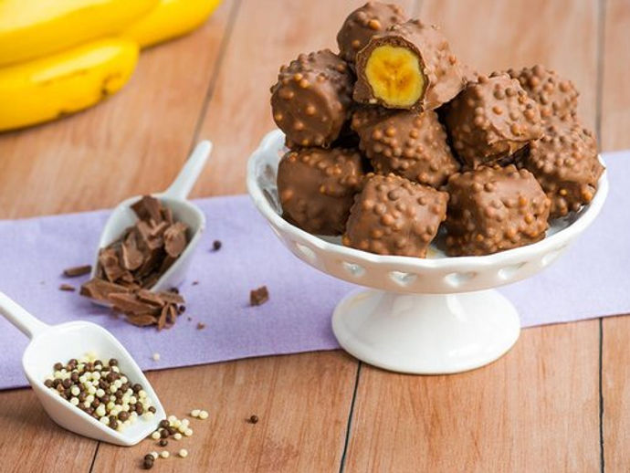 Ingredientes Para a receita Banana Crocante 350 g chocolate ao leite 1 pacote de Confeito Choc Bolinha 6 unidades bananas.papel manteiga...